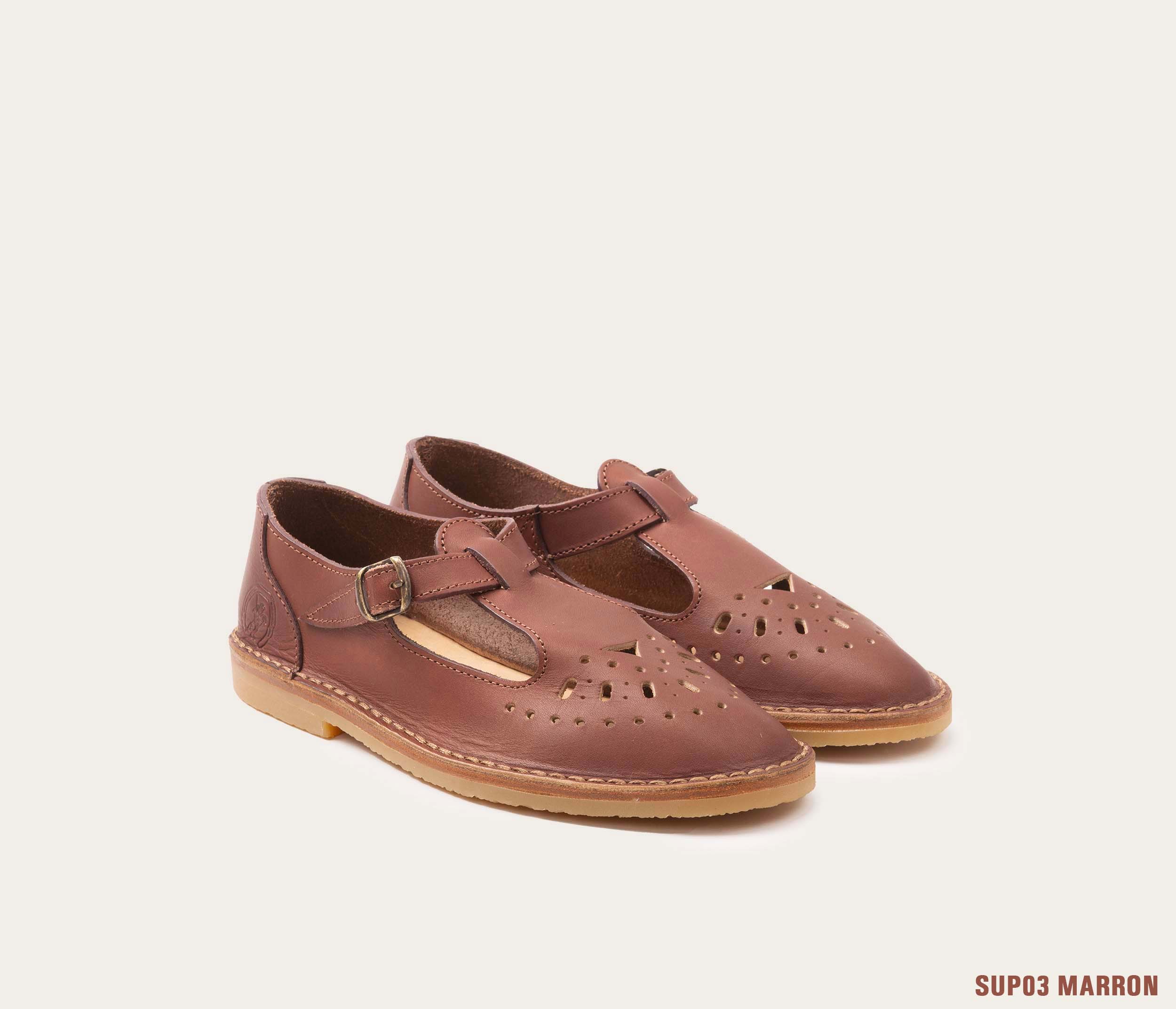 • Semelle en cuir & patins crantés : Allie robustesse, adhérence et durabilité. (Visible sur les Jules)