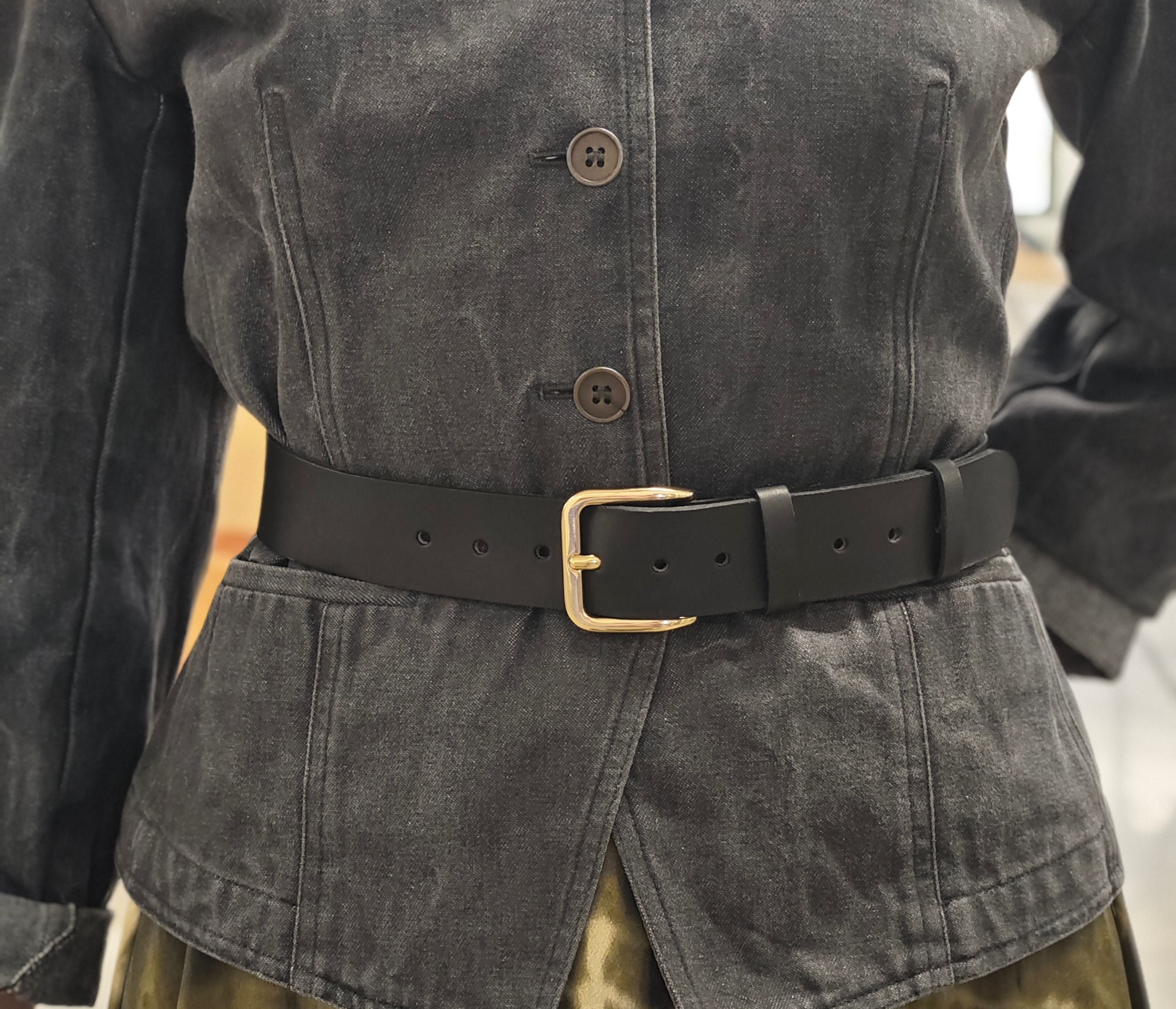 A la fois simple, intemporelle et élégante, la ceinture en cuir noir et sa boucle dorée s'accordera parfaitement à toutes tenues et en toute saison. Fabriquée à partir un cuir français et dans notre atelier en Camargue, cette ceinture vous accompagnera pour longtemps et vieillira bien.